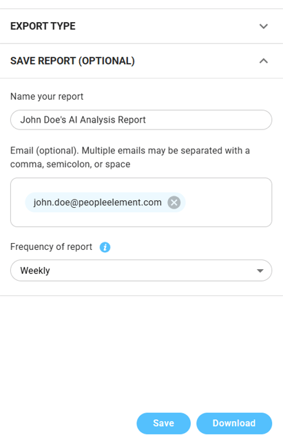 - "Save Report (optional)" step will appear below the Export Type selection