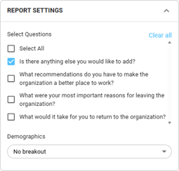- Select the question(s) you want to include in the Report Settings.