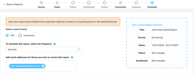 Save and schedule a Report Verbatim Comments Report (PDF Only)
