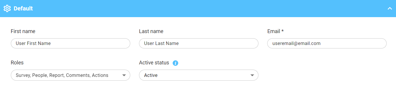 Platform users can be created by any user that has access to the User roles page of the PEOPLE tab. Users can be created one at a time or in bulk.