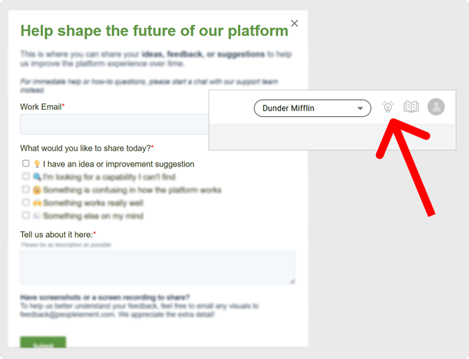 If you’d like to send us screenshots, images, or recordings that provide more detail—or if you want to set up a time to chat about your ideas—please email us at feedback@peopleelement.com.