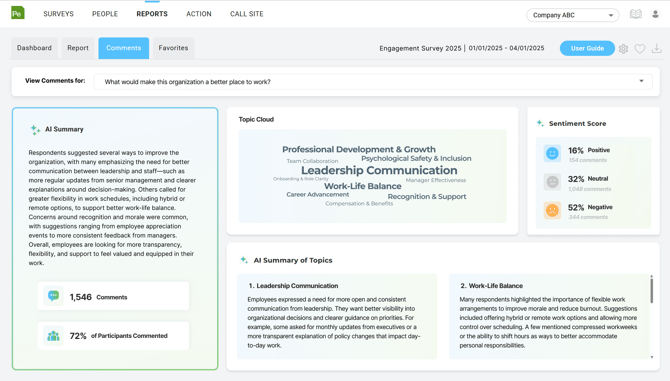 We introduced Risk Insight, an evolution of our Red Flags feature into a more comprehensive Risk & Compliance solution. Powered by enhanced AI monitoring, Risk Insight automatically identifies open-ended survey responses that may indicate concerning, inappropriate, or high-risk situations requiring attention. Organizations can also customize keyword tracking to highlight topics most relevant to their needs, while continuing to leverage compliance reporting tied to specific questions and responses. This upgrade provides deeper visibility into potential risks and helps teams respond more proactively.