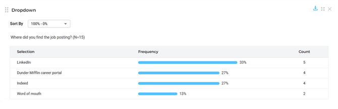 You can visualize response frequencies, filter by demographics, sort data, and export to Excel. We’ve also improved the survey experience for participants on both mobile and desktop. To read more about dropdown questions in reporting, click here.