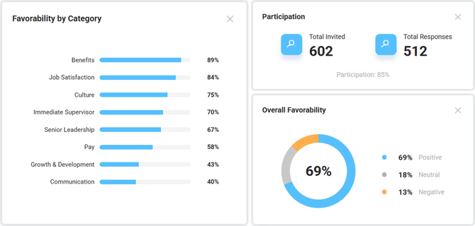 If you have received enough responses to populate, the below visuals will be available on your Dashboard regardless of the questions added to your survey.