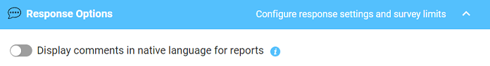Comment responses collected in any non-English language will default to display in English for reporting purposes. If you wish to view comments in their native language within reporting, toggle on display comments in native language.