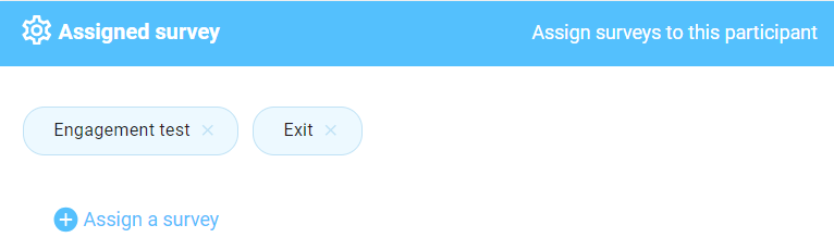 Scroll down to the assigned survey section and find the survey you want to unassign them from. Click on the "X" next to the survey you want to unassign.